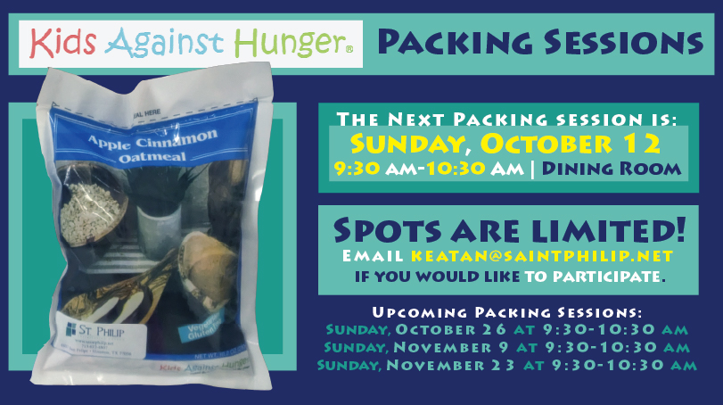 Save the following dates for upcoming Kids Against Hunger Packing Sessions:
